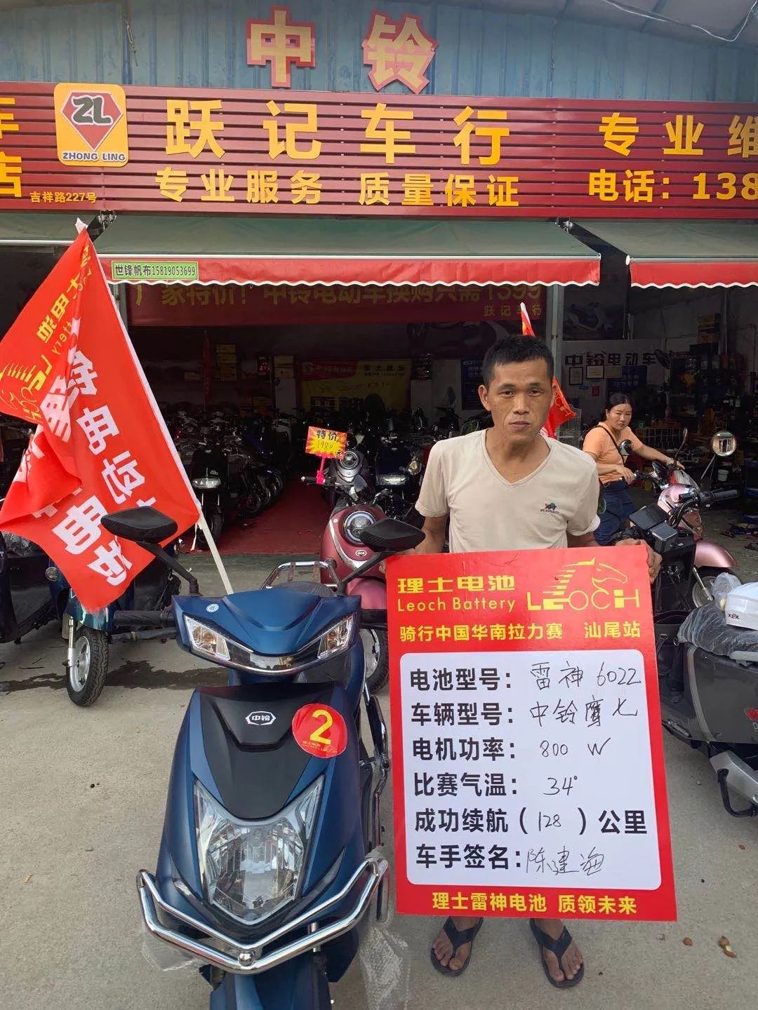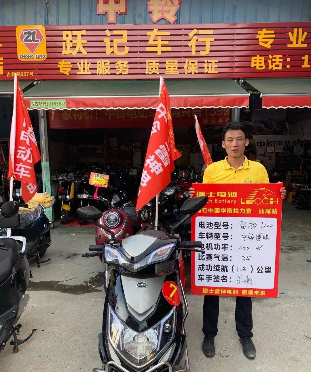 搭配雷神72-22型号电池的中铃1000w两轮车,直追其后,取得成功续航133公里的优异成绩!