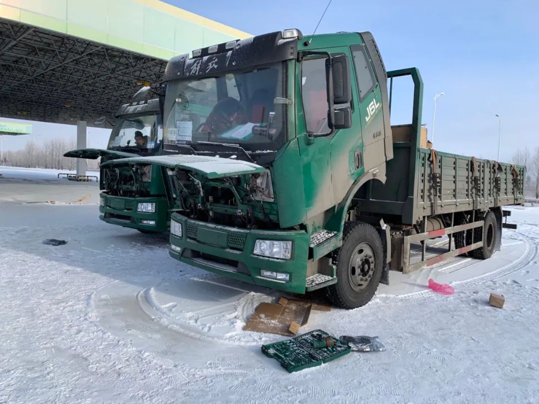 2019年冬天,靳越峰随同CA6SL国六天然气发动机高寒标定车队来到这里。冬日的呼伦贝尔,早上八点钟,天才朦朦亮。靳越峰提前一个多小时就赶到了停车场,打着手电筒检查车辆状况,采集初始数据。由于车辆刚启动时,空调温度还没上来,驾驶室里冷得就像冰窟,他要一边检测一边通过搓手跺脚取暖。等到这些准备工作都做好了,空调接近了正常温度,其他人员也都到齐,车队迎着初升的太阳出发了。