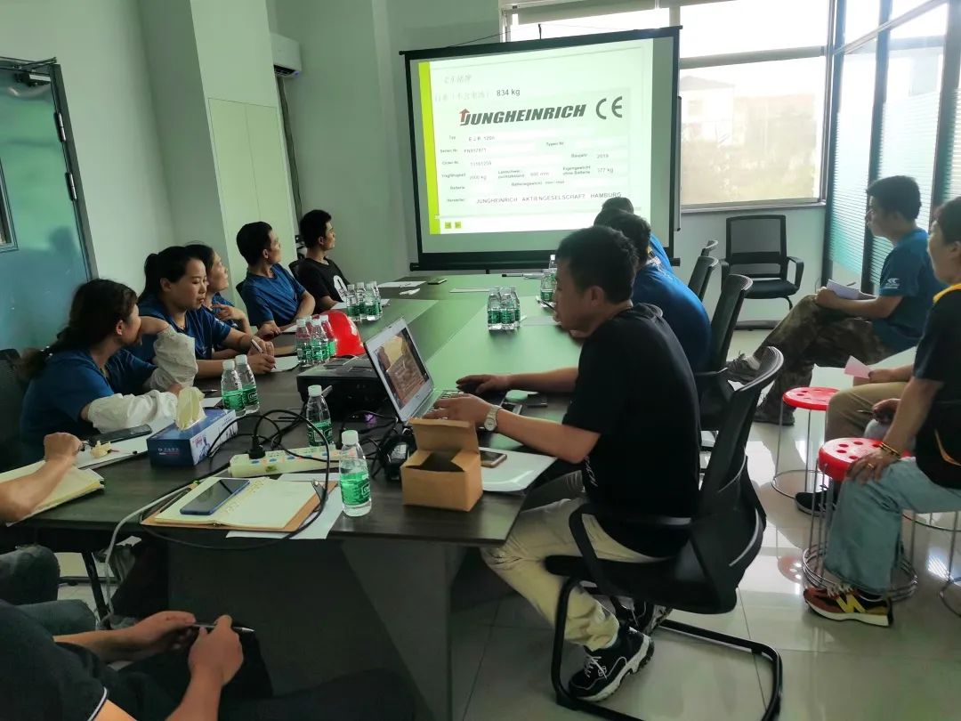 交车仪式完成后,永恒力苏州分公司的苏北区域售后主管徐传林先生热情地向员工们介绍起了他们未来最亲密的“伙伴”,并手把手地进行了实际操作培训。