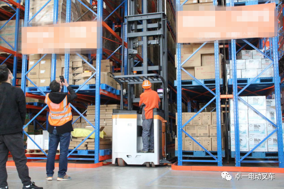 卓一窄巷道电动三向堆垛叉车汽配行业应用案例