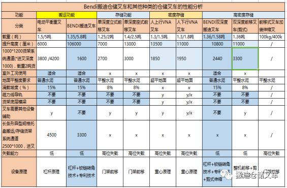 新起点:Bendi搬迪仓储叉车必将为仓储行业存储率提升做出突破性技术贡献,并为货架行业的系统规划提供最优化的方案和产品依据;更好地为客户提高仓储空间利用率,实现最大化的托盘存储能力,节约额外地租和物业费用。与此同时,Bendi搬迪仓储叉车集:平衡重叉车+托盘叉车+仓储叉车的功能集于一身,室内、室外工况作业的功能,集仓储及装卸与一体。具有很强的适用性和通用性,可实现“单托盘运输工序最简化”,减少货物倒运环节、设备购买数量和设备种类,节约驾驶员数量,减免设备之间进行货物区域转换的环节,有效避免货损风险,降低物流运营成本,提高20%装卸绩效。