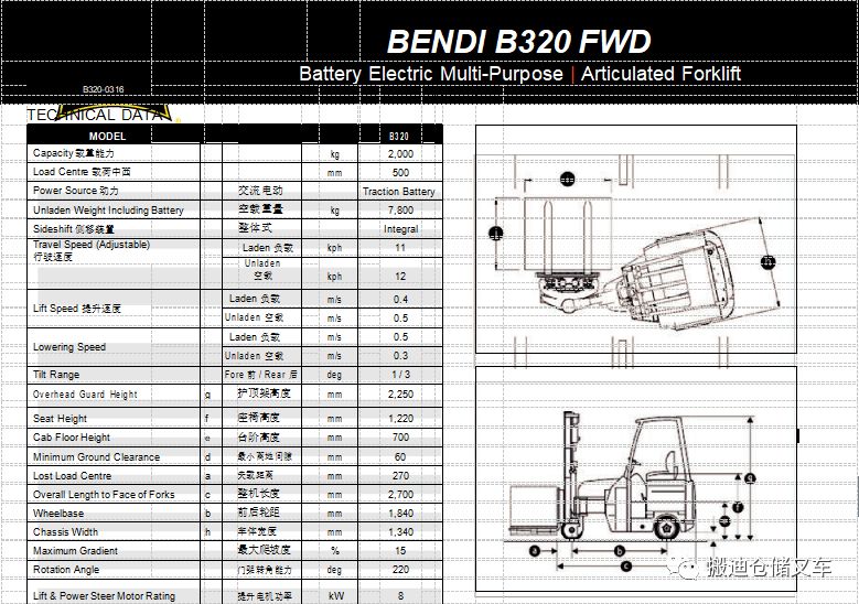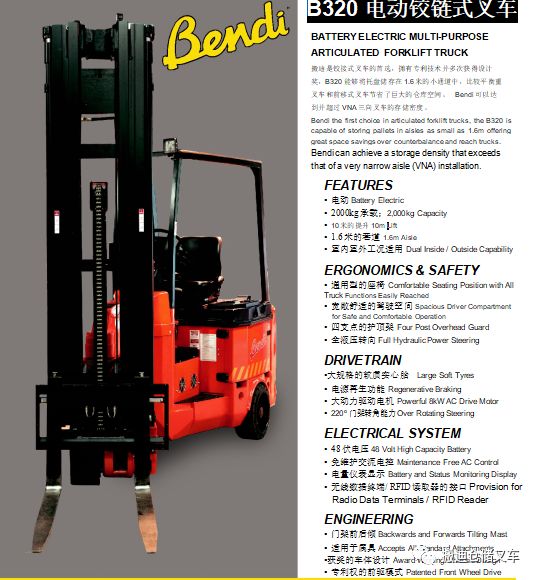 Bendi无限制窄巷道叉车 B320产品样册