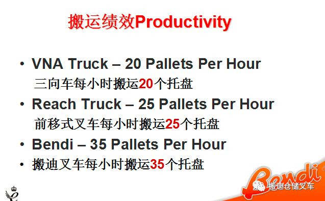 4.6降低货物因“叉车倒运”造成的货损机会:Bendi无限制窄巷道叉车不要别的叉车辅助,降低货损;