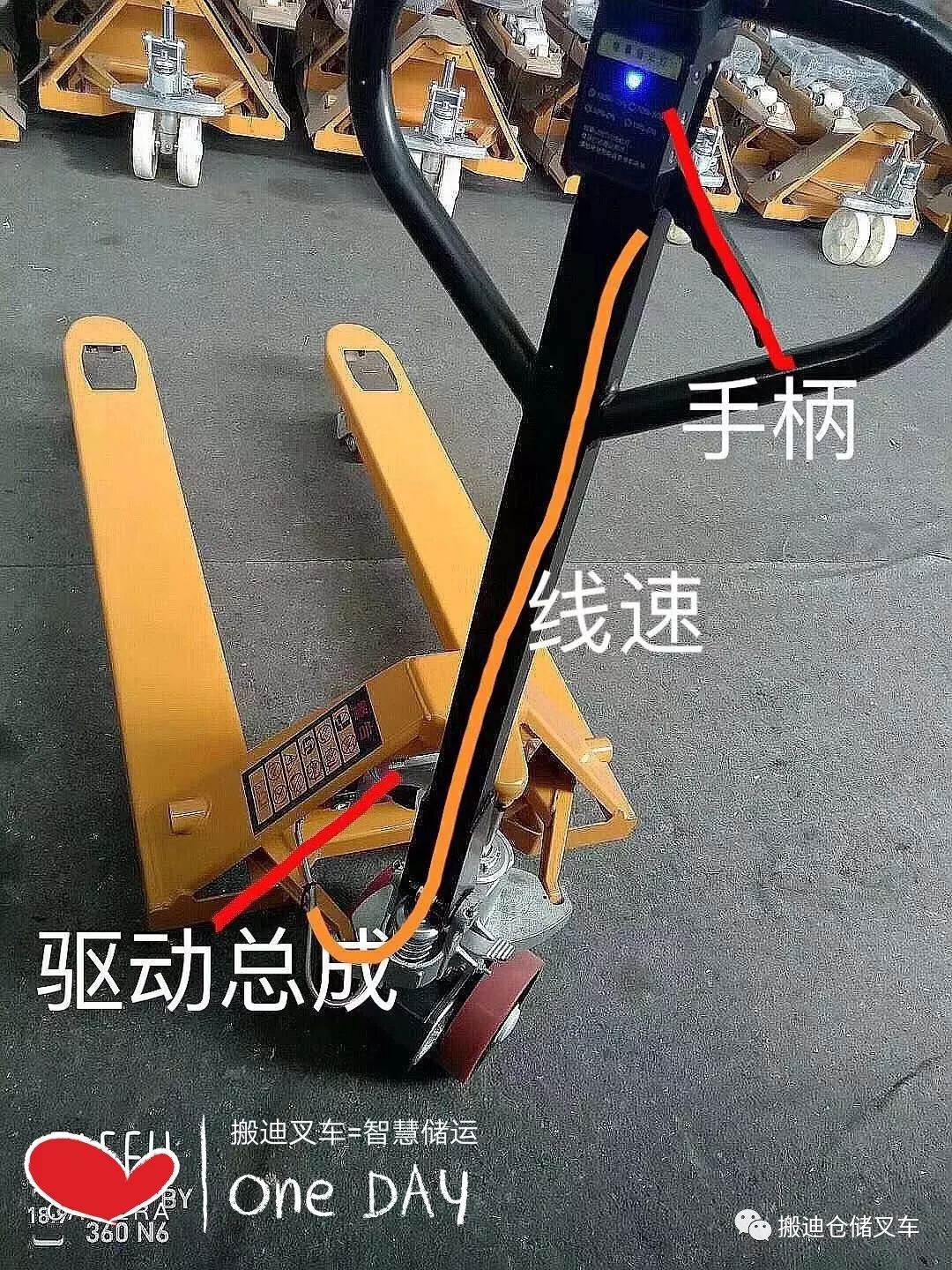 2.4 液压车的手柄上 安装 锂电操作手柄(带提升功能和行走功能)。