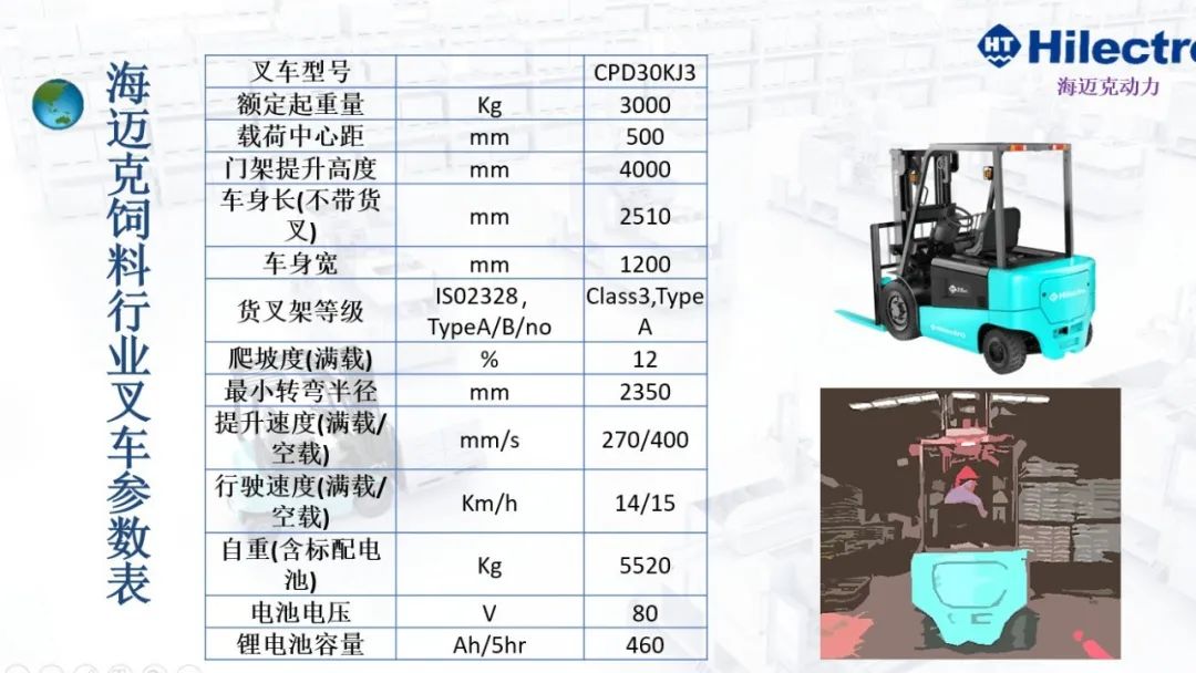 海迈克电动叉车饲料行业应用案例