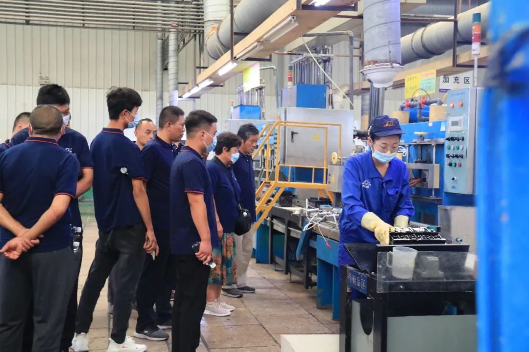 在系统的产品知识讲解之后,来自河南开封的客户前往生产工厂的极板车间、组装车间进行参观,感受理士电池生产过程中的铅粉制造、板栅制造、固化干燥、短路检测、二次固化、焊校端子、气密检测、加酸、充电、包装各生产环节和关键工艺点。