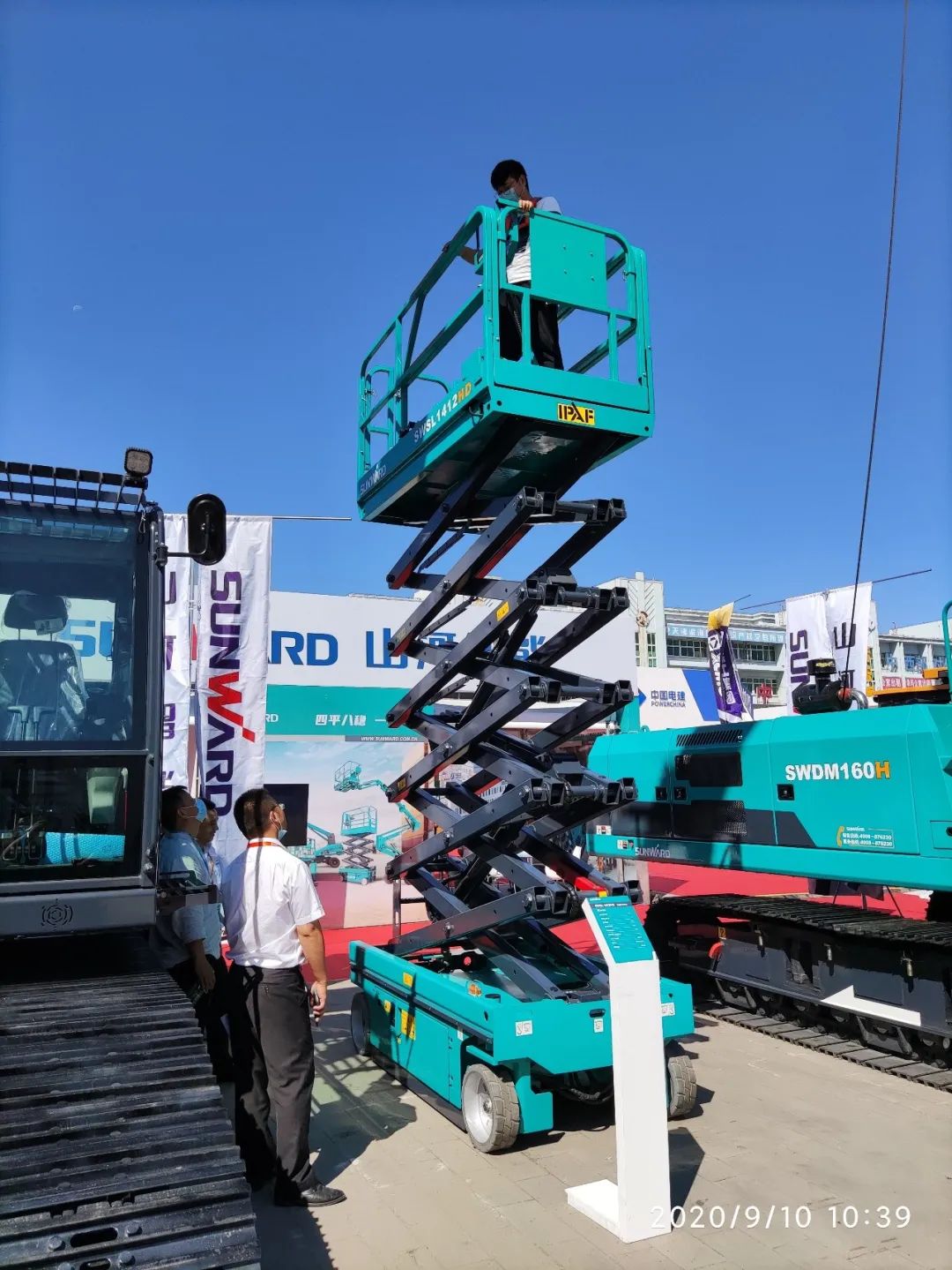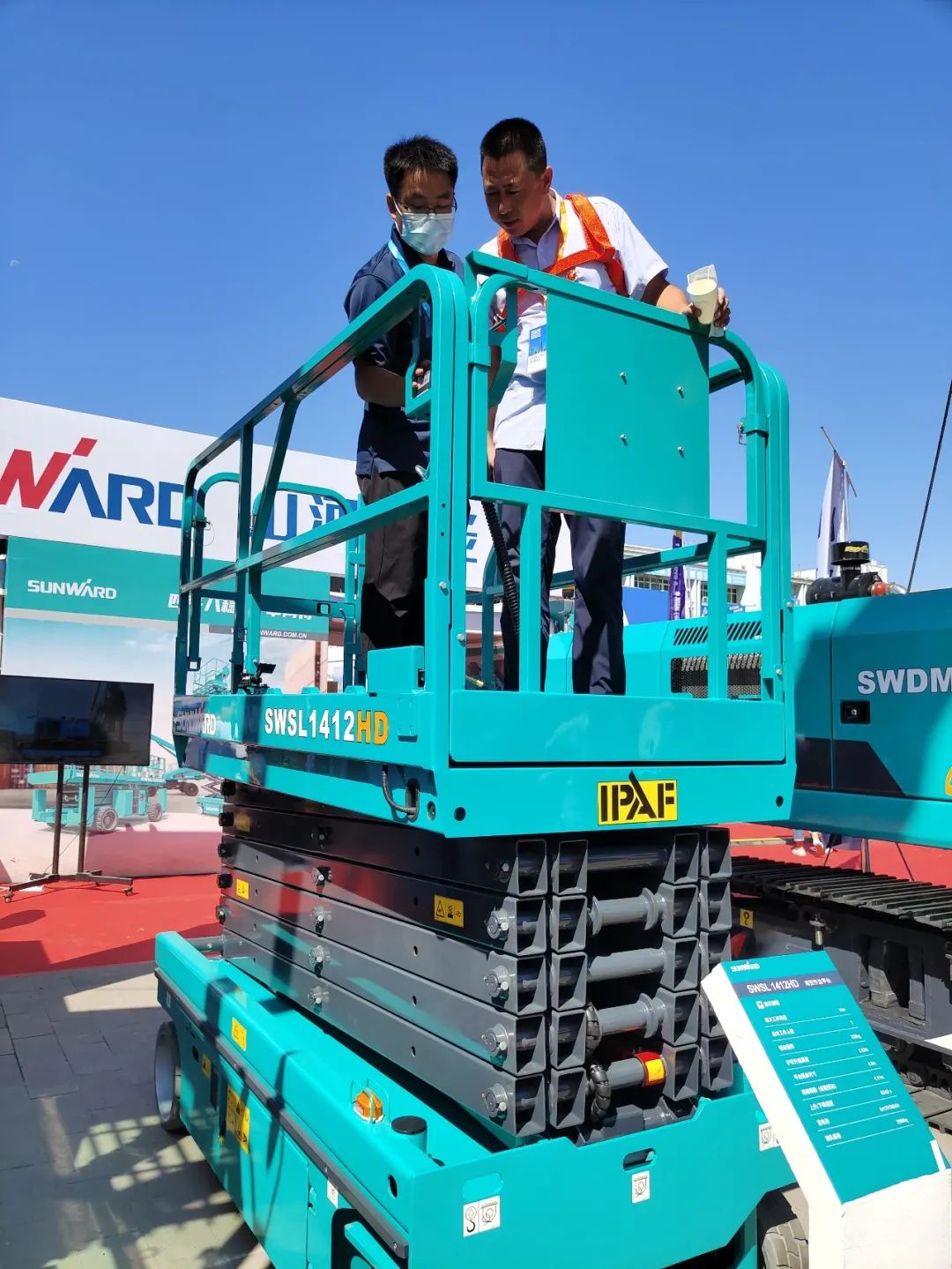 9月10日,山河智能两款高空作业产品:电动剪叉高空作业平台SWSL1412HD和伸缩臂叉装车SWTH2710亮相第三届雄安德维斯展,不少客户对产品表现出浓厚兴趣,纷纷要求操作体验。