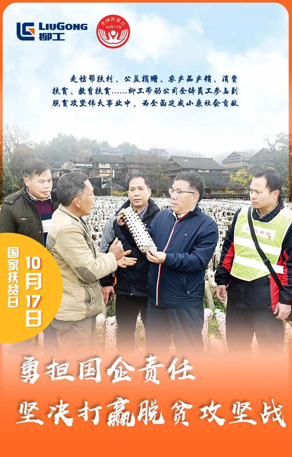 “十三五”以来,柳工集团认真贯彻落实上级党委和政府各项部署安排,承担起三江侗族自治县五个贫困村(林溪镇美俗村、高友村、枫木村和斗江镇思欧村、扶平村)、1万多村民的脱贫任务,带动公司全体员工共同参与到脱贫攻坚这一伟大事业中来。