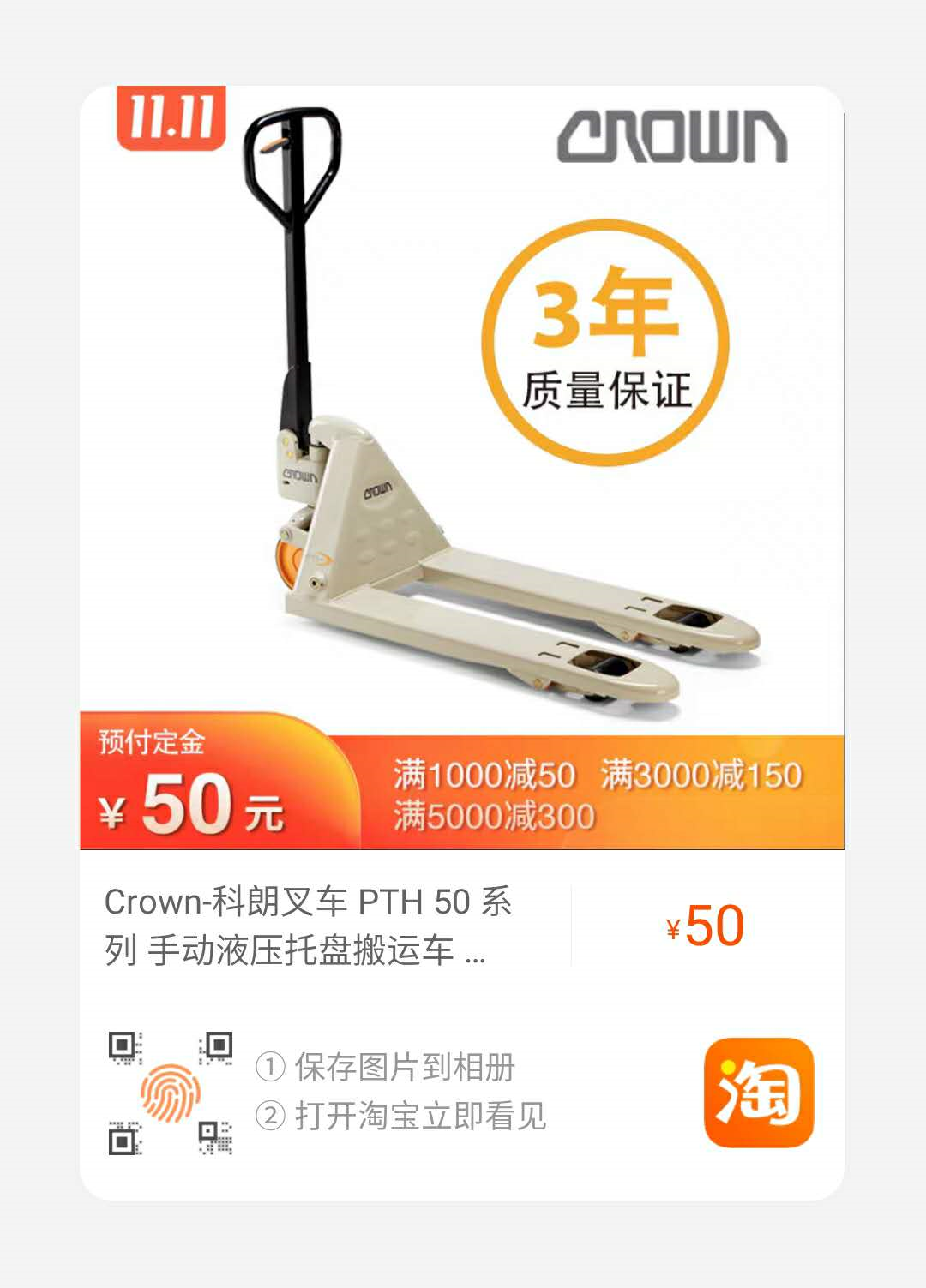 方法一:保存图片到相册,然后打开 手机淘宝客户端,即可支付50元定金