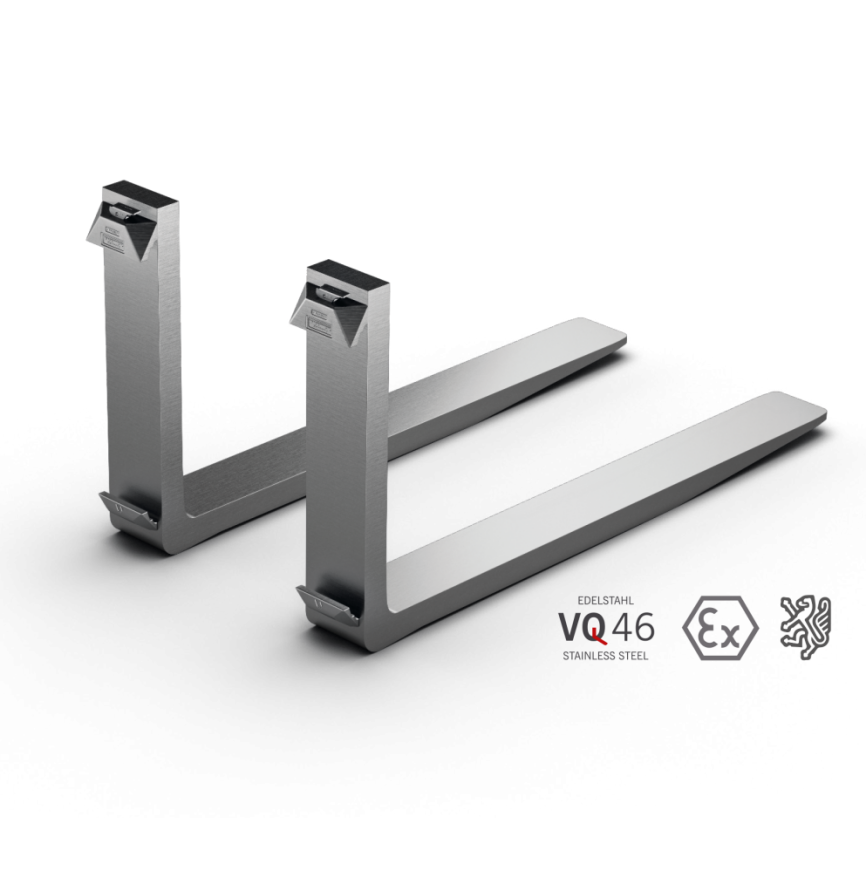 Vetter全不锈钢货叉也可与圆形Beluga叉尖一起使用。这显着提高了防爆保护区的工作安全性。