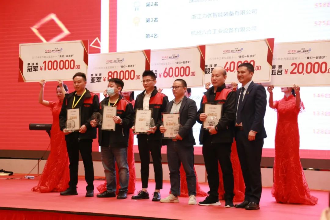 第五届中力双11成绩惊人,双11现场总销售台量冲破11万台,总销售额突破11亿元,中力特为双十一活动的千万金主及单项奖颁奖,并为第四届骑行比赛、2020年度优秀阿哥店、2020年度优秀经销商、2020年度单品销售冠军进行颁奖。