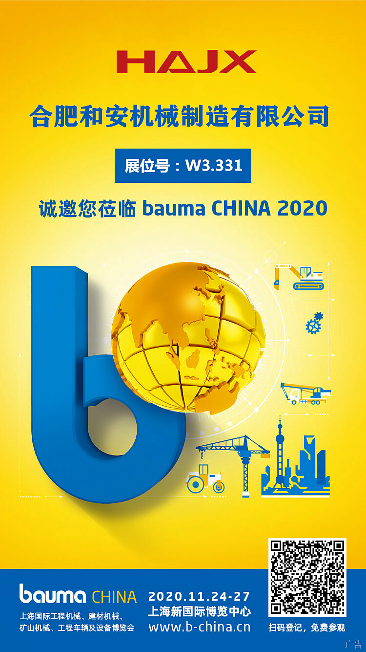 2020年的bauma CHINA工程机械展如约而至,即将见证工程机械智慧的传承。没有什么能够阻挡生产建设的步伐,更挡不住工程机械人的热情,属于我们大家的机械盛会将在11月24日-27日盛世开启,和安机械会在上海新国际博览中心W3.331展位等待各位朋友的到来。