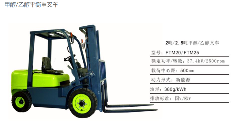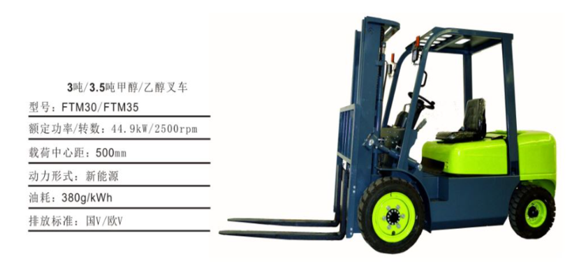 新能源叉车匹配美国福特新能源发动机。此发动机可以燃烧甲醇、乙醇、天然气、液化石油气等清洁燃料。此发动机装在乘用车上可达到国ⅥB排放水平。