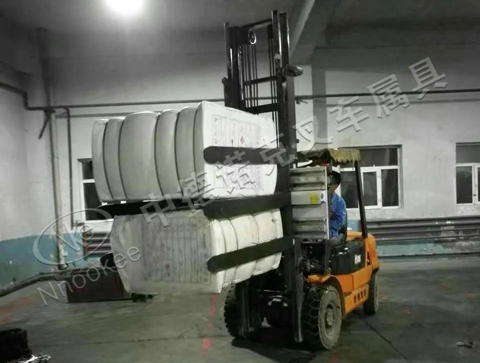 完成改装后,叉车即可通过叉夹完成搬运作业。作业时只需叉车司机操作,即可通过所附加的油路驱动,实现旋转、夹抱、叉进等多种操作。