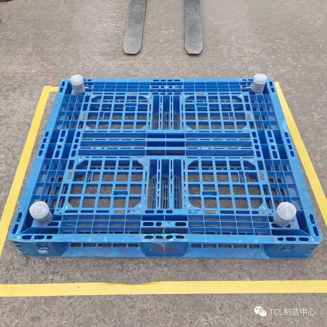 1、比赛选手叉取放置于指定位置的托盘,然后转运至另一指定位置。从第一层起,托盘四个角各放一可乐罐,托盘堆叠在上面。