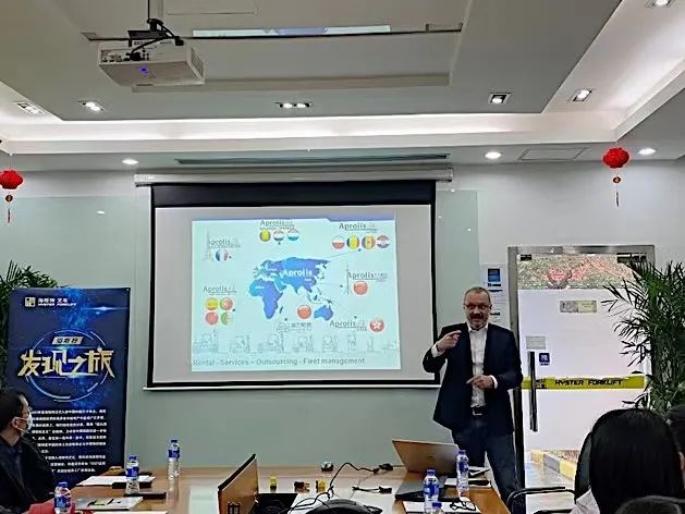 埃力租赁总经理Patrick正在向大家介绍公司主营业务