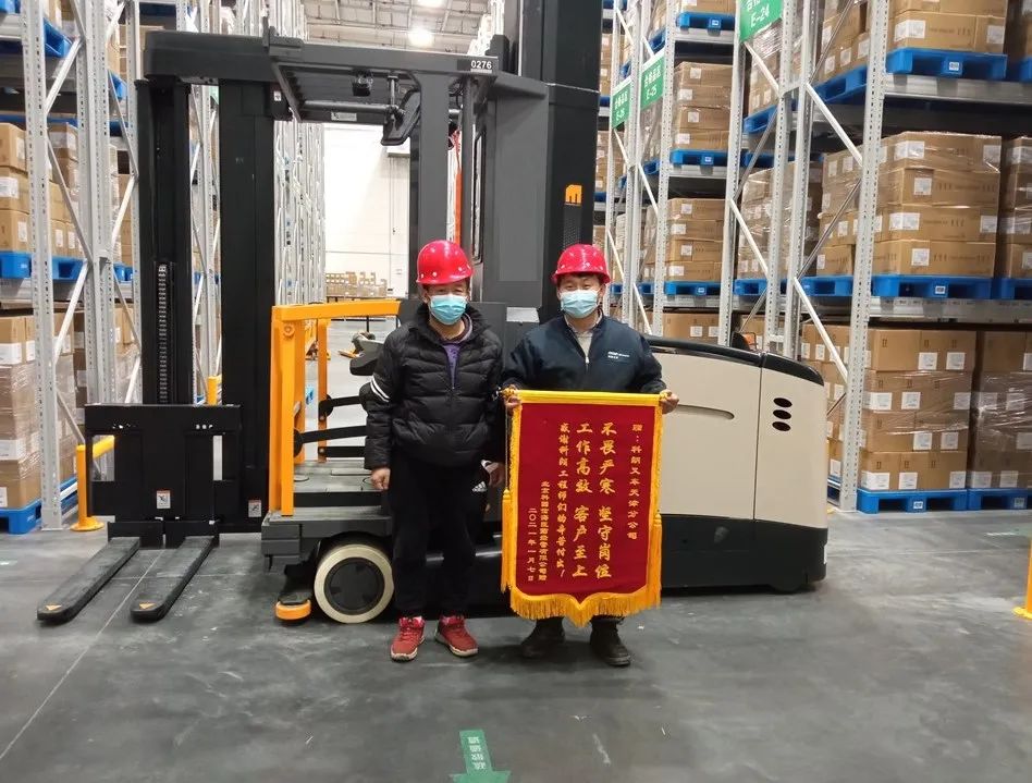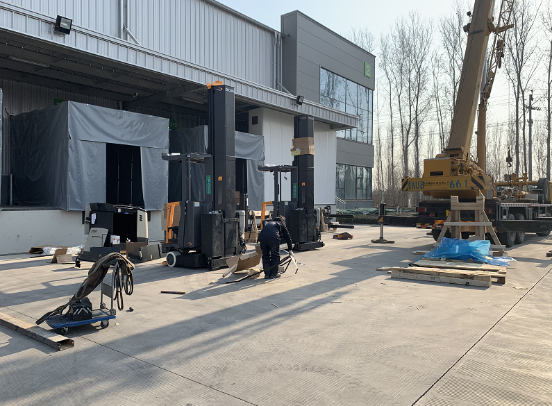 接下来,运营部门也立马跟进,2 台“大家伙”随即运抵客户仓库。时间紧迫,客户周一就需要进行入库作业,服务部门同步安排了经验丰富的工程师,利用周末两天时间,上门为客户安装调试。时间紧任务重,即使天寒地冻,也阻挡不了工程师们火热的干劲。也许厚厚的工作服无法完全阻挡寒风,但工程师们的心中只有一个信念,那就是高质量、高效率地完成安装调试工作。