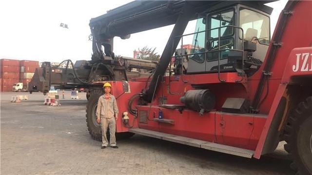 转载 2021-03-05 08:38 海口文明网 来源:海口文明网王儒标和他在日常工作中驾驶的集装箱正面吊。受访者供图
