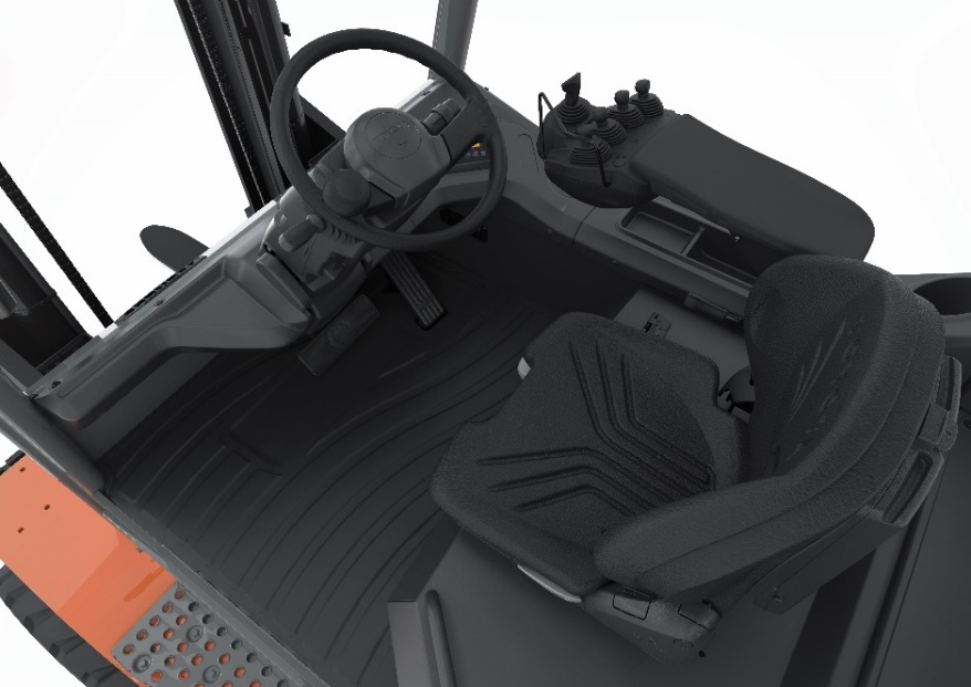 上图9FBM是一款大吨位电瓶式叉车,但是它的操纵却非常便捷,方便包括女性作业员在内的所有操作驾驶人员的使用。