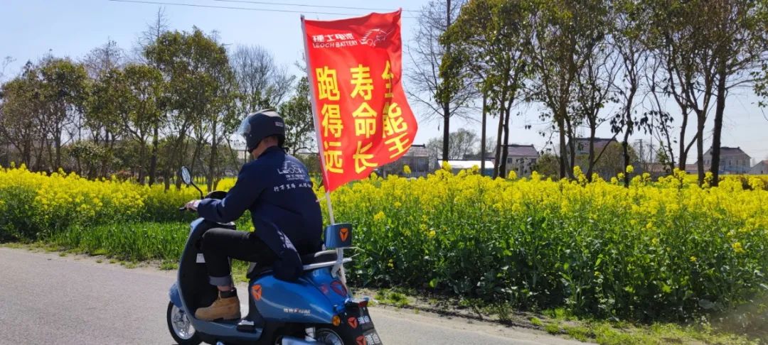 油菜花开正当时,满地金黄沐春风。沿途两道的金黄绚烂夺目,阳光明媚的白天,在中骑行,春天扑面而来,令人陶醉。美不足中的是风很大,当天气温只有4℃-13℃,虽然吹在脸上的寒意不是三九天里的刀割,但4-5级西北风对于骑手们来说仍是一个不小的挑战,迎风飞扬的旗帜更是给电池续航增加负担。当然,“长寿命、跑的远”的理士6-DZF-21.3电池自然没有这重顾虑,顶风骑行,得心应手。