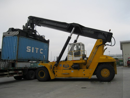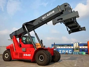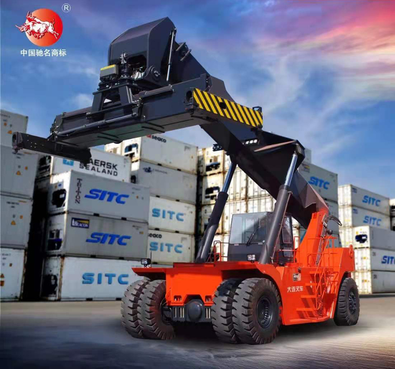 2002年,大连叉车有限责任公司的前身——大连叉车总厂,研发设计出中国第一台45吨正面吊运机,这是一款专门为20英尺和40英尺集国际装箱而设计的,主要用于集装箱的堆叠和码头、堆厂内的水平运输,与叉车相比,它具有机动灵活,操作方便,稳定性好,轮压较底,堆码层数高,堆厂利用率高等优点。可进行跨箱作业。特别使用于中小港口,铁路中专站和公路中专站的集装箱装卸,也可在大型集装箱码头作为辅助设备来使用。整车设计高标准、高性能,达到国内领先水平,国际先进水平。