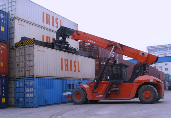 2008年7月20日,安徽合力自主创新设计制造的RSH4532集装箱正面吊运机被芜湖港购买并投入使用,合力正面吊正式进入市场。
