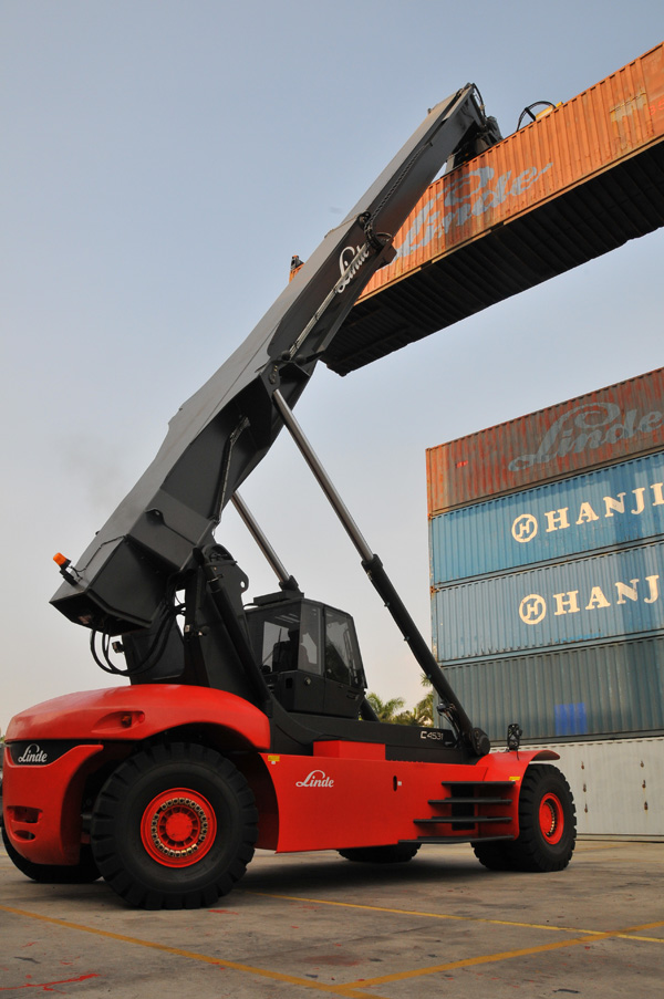 以人为本、性能卓越、经久耐用、可靠性强的林德集装箱正面吊完全可以满足客户的需求,用户可以得到林德全球销售服务网络时时提供的强有力的全面支持。目前林德正面吊用户已经遍及全国各地各行各业,其中包括港口、造纸、 铁路、仓储物流等行业,林德集装箱正面吊当之无愧地成为集装箱搬运的最佳选择。