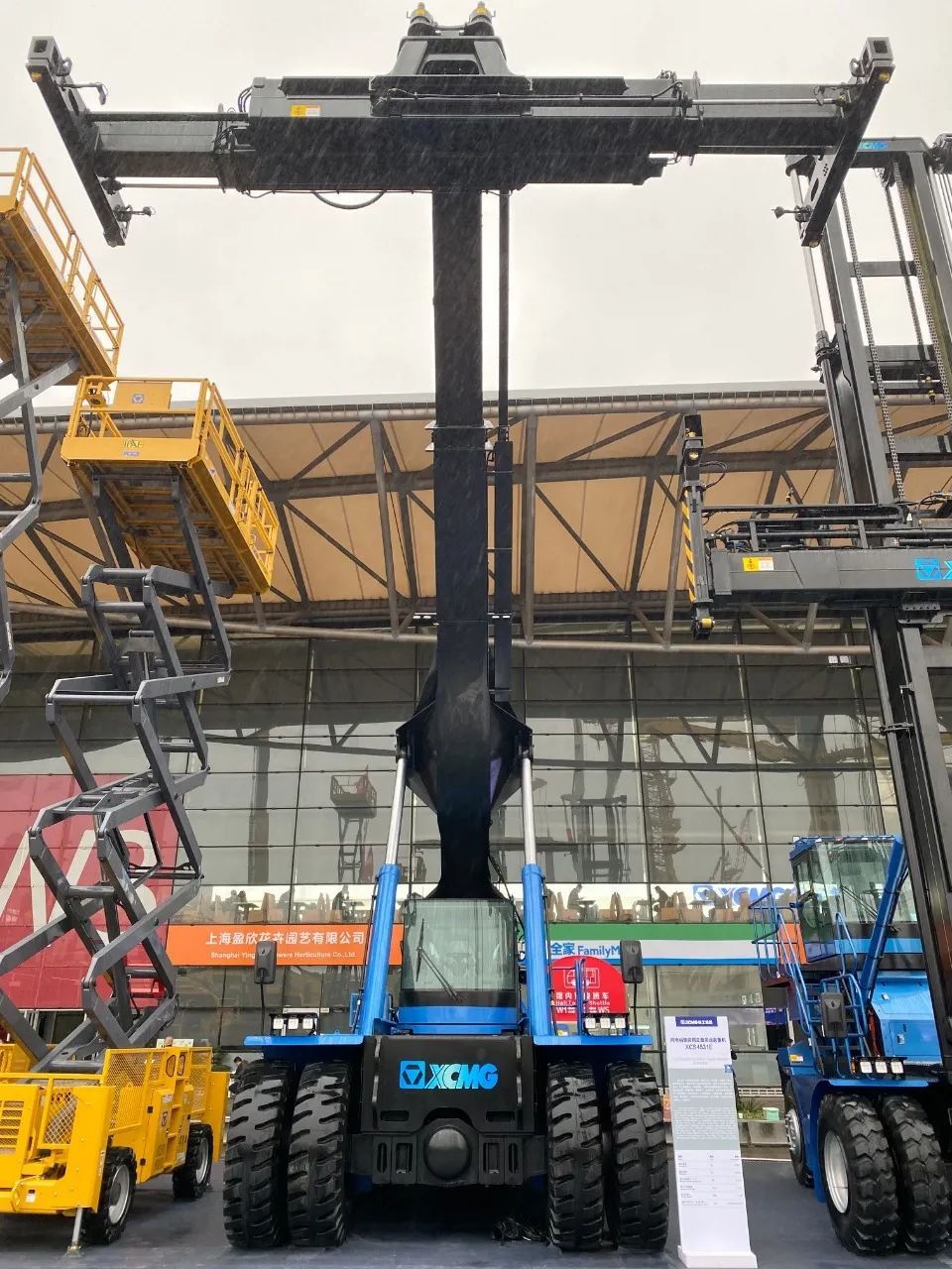 哈工机械于2005年开始生产HCS46型46吨集装箱正面吊。最新研发的集装箱码垛机,改变了传统作业方式,能从运输车上抓取集装箱以后上车旋转直接码垛,或者从堆垛上抓取集装箱后旋转装车,省油、省轮胎、安全、高效。可翻转吊具能进行箱对箱倒箱作业、方便散货进箱和拆箱。
