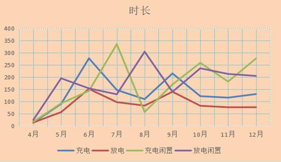 | 月份 | 充电 | 放电 | 闲置时长/h | ||||||