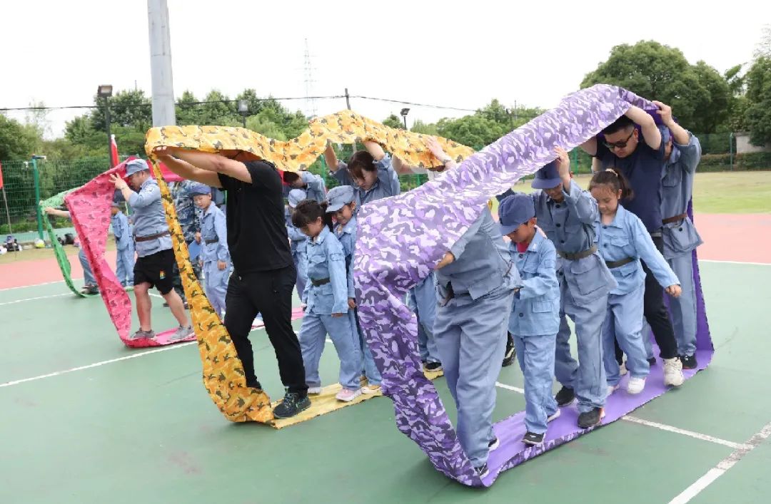 在接下来的亲子团建活动中,“诺宝”和家长们被分成四个红军方队,通过“救死扶伤”、“无敌坦克车”、“投弹演练”等游戏环节,通力合作,在实践体验中学习和感受当年浴血奋战的艰辛岁月,感恩革命先辈的伟大付出。