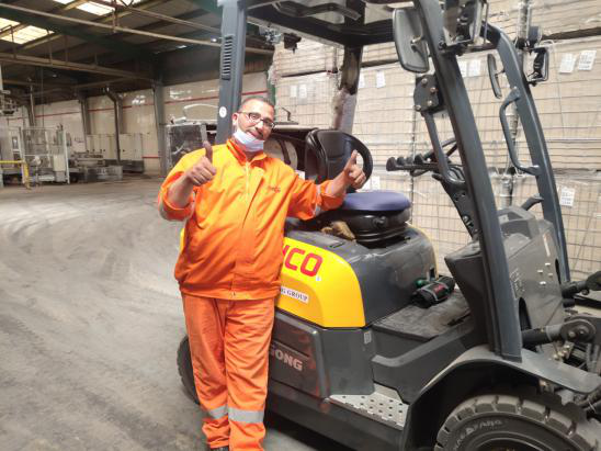 柳工CLG2025G的驾驶舱布局合理,操作和乘坐空间都很宽敞,高大的埃及驾驶员一样可获得舒适的乘驾体验,发动机和变速箱采用三点悬浮式安装,动力柔性输出,整机震动降低50%,再配上减震座椅,驾驶员说几乎感觉不到震动。驾驶员还介绍,他的叉车小分队负责把生产线上打包好的矿泉水搬运到仓库,由于工厂流水化作业,一刻也停不下来,他们一个接一个轮流搬运,叉车连续不断工作,长时间下来,人很容易累。有了C系列舒适的操作体验,工作轻松了许多,保证工作的顺利进展。