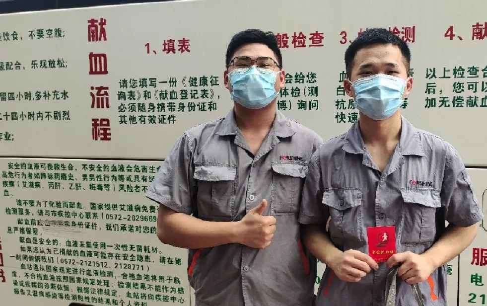 许多“老献头”的员工们骄傲地拿出好几本献血证,向大家展示着自己的“一腔热血”,更是不断鼓励着初次献血的新人们,打消他们的顾虑,给予他们勇气。来自生产综合管理部的常少华介绍说他已经连续参与无偿献血近十年,累计献血量达3000ml,说到这时他的眼睛里充满了无限的自豪感和荣誉感。