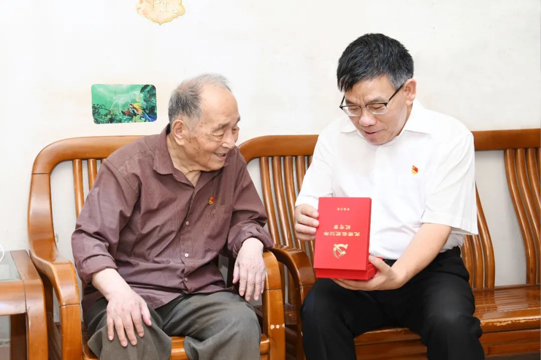 6月24日下午,柳工有限党委书记、董事长曾光安,柳工有限党委副书记、纪委书记、工会主席李于宁一行,走访慰问了90多岁高龄、70余年党龄的公司退休老党员谢文光、李常芳,为他们送上“光荣在党50年”纪念章。
