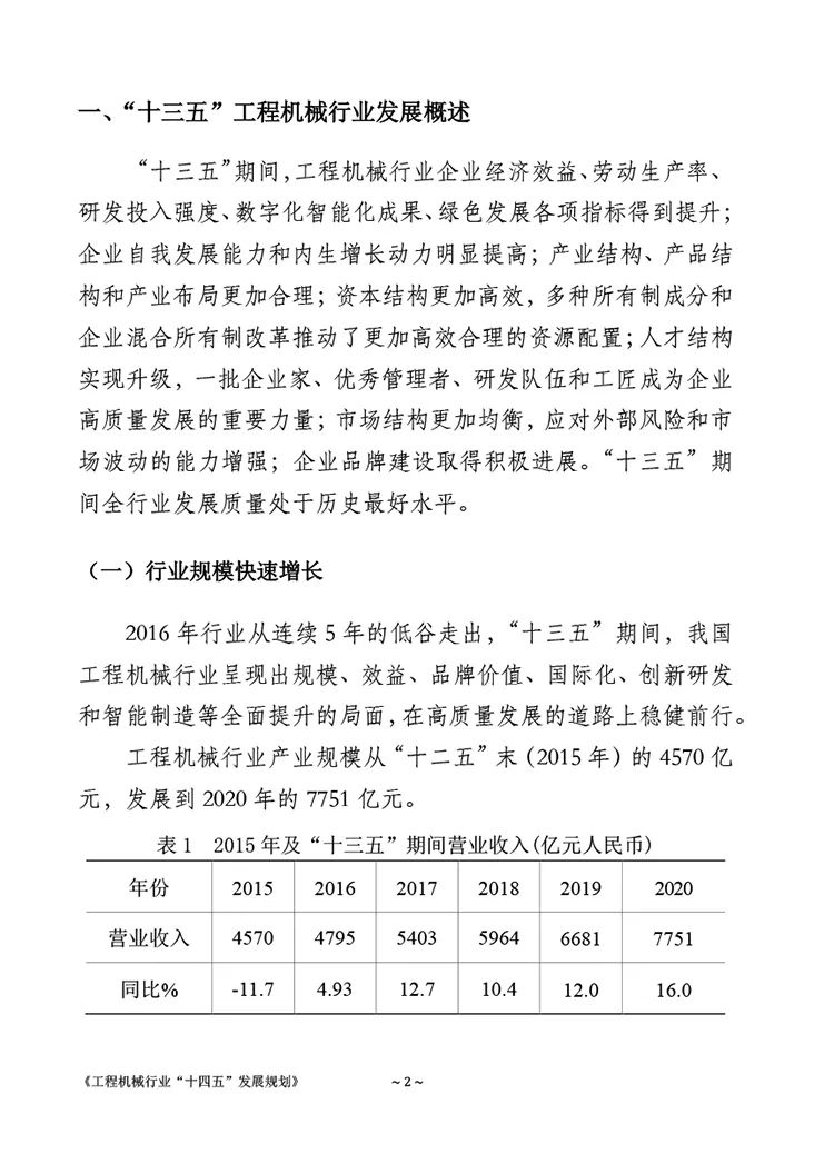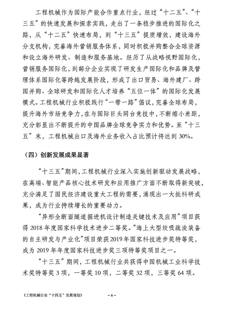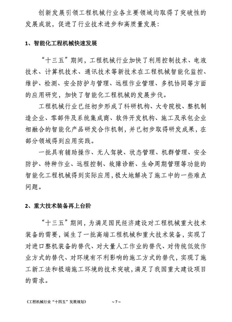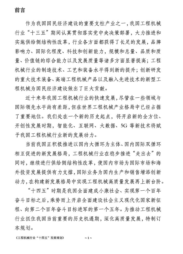 《工程机械行业“十四五”发展规划》全文