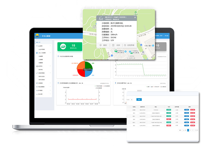 1、安全管理:其中有超速倒车报警、未系安全带报警、停车超时报警、进出区域报警、离线报警、车速呈现与限速、用车权限控制、安全事件统计、安全事故回放等。此功能可辅助司机现场安全驾驶,安全事件实时记录和追溯。
