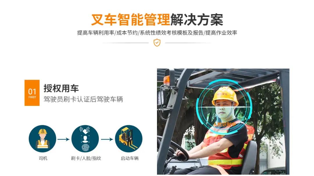叉车司机需要刷卡/人脸/指纹识别认证后才能启动分配给自己的车辆。