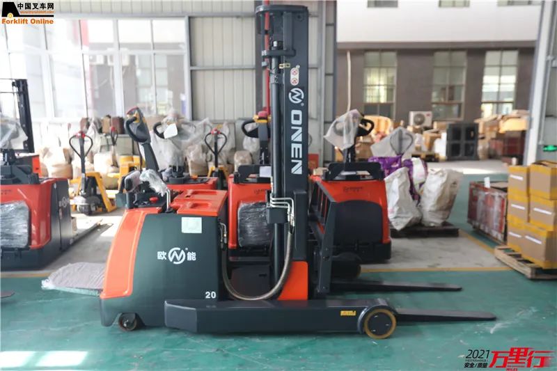 在依托欧能叉车30年的技术积累与成熟的制造工艺,欧能电动物料搬运设备采用高强度的车身结构,世界著名的交流电控公司合作配套世界著名品牌持久耐用的变速箱以及动力强劲的电机,配罝高端,安全可靠。其主推明星产品座驾式前移式电动叉车操作轻盈,使用和维护成本低,车身 体积小、噪音低、节能环保,性能稳定;全电动托盘车搭配进口电动手柄,操作轻便自如,有效降低工作疲劳;电动堆垛车同样秉持欧能一贯的髙配Si具有优异的爬坡性能与出色的稳定性,可轻松完成各类高空物料堆垛;此外,欧能推出的新型电动平衡重叉车,车身紧凑,转弯半径小,尤其适合在狭小的仓库进行物料搬运,同样受到市场青睐。