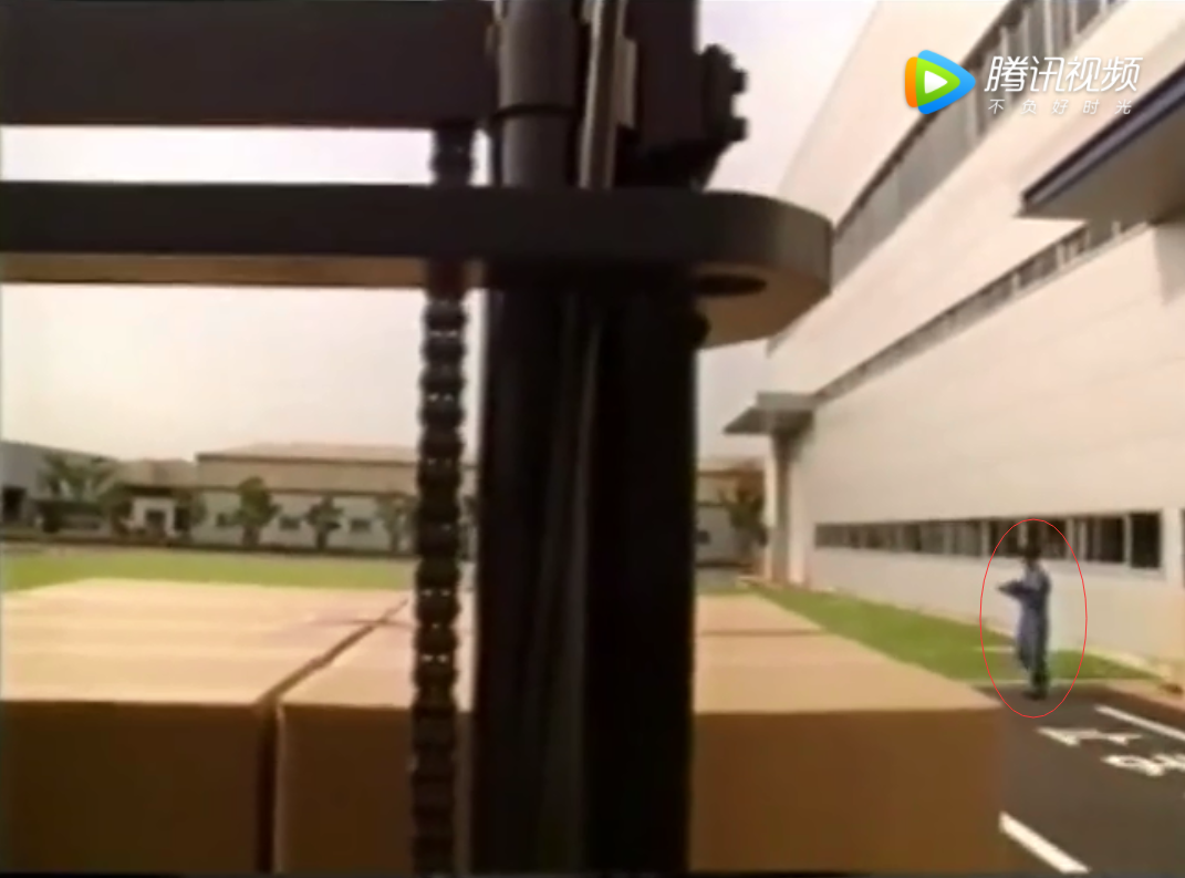 就在这时,突然有人从车间快速走了出来,他并没有留意到快速行驶中的叉车。叉车司机也来不及反应,最终撞上了这位行人。