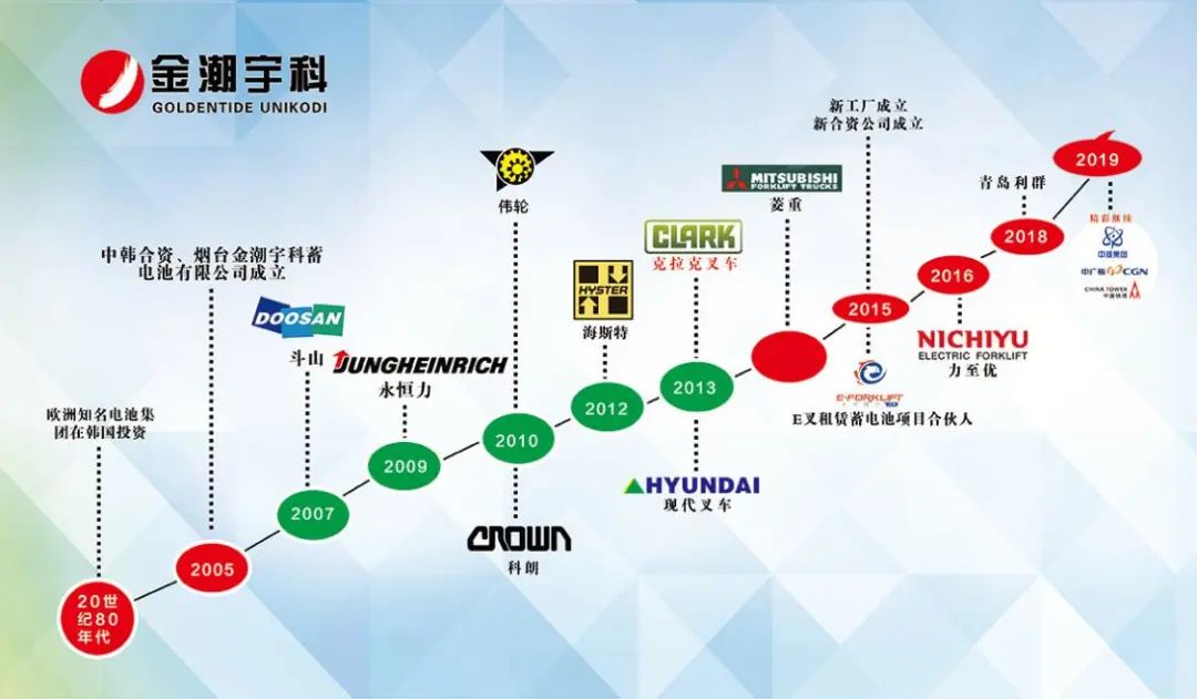 韩国KODI-S株式会社携其近二十年积累的牵引电池先进技术于2005年将其韩国工厂整体搬迁到中国烟台,由山东金潮股份有限公司控股,组建了合资公司。在此之前, KODI-S在韩国的工厂前身是二十世纪八十年代欧洲知名电池集团在韩国投入技术和资金建立的合资企业。