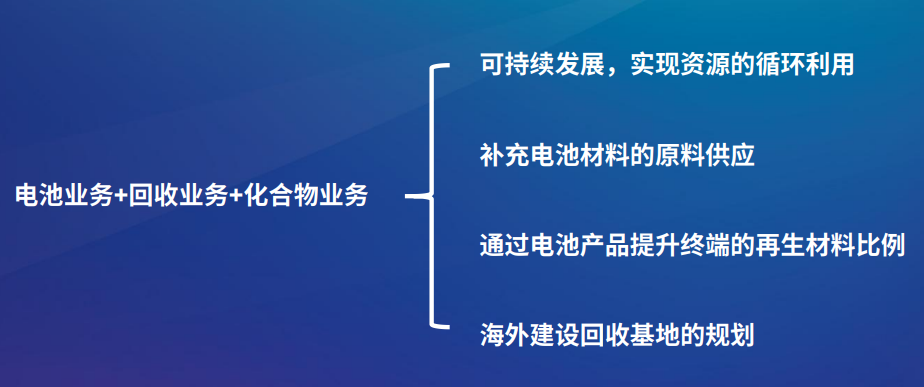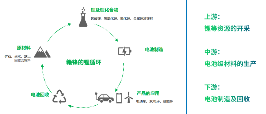 赣锋循环成立于2016年,已被纳入国家工信部《新能源汽车废旧动力蓄电池综合利用行业规范条件》。目前,赣锋通过化工板块、电池版块、循环版块,已形成了从锂化合物,到锂电池,再到回收再生为化合物的完整循环,下游企业可以在任一环节内进入,并经由赣锋的循环生态而获得更加清洁的产品属性。
