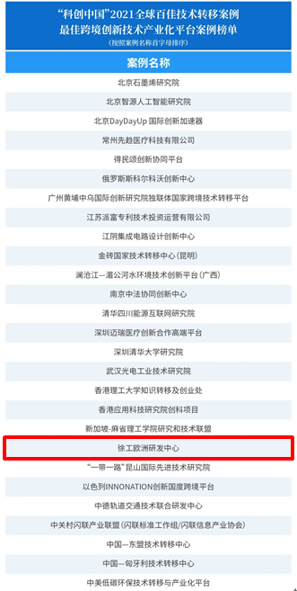 徐工欧洲研发中心成功入选“科创中国”2021全球百佳技术转移案例