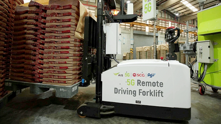 泰国也已经通过5G网络成功进行了一次远程叉车操作。叉车位于Saraburi,而司机则坐在110公里外的曼谷。他们能够实时操作叉车,流畅地将托盘从A地运到B地。