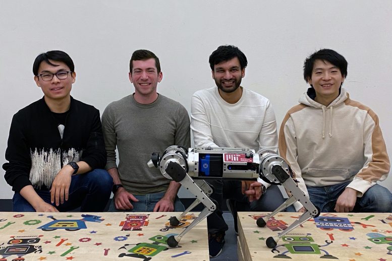 从左到右:博士生陈涛和 Gabriel Margolis;Pulkit Agrawal,电气工程和计算机科学系的 Steven G. 和 Renee Finn 职业发展助理教授;和博士生傅翔。