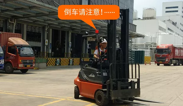 唯创安全叉车限速器除了可以做到显示速度、超速报警、限速管理,还可以在叉车在倒车时,警示灯闪烁,同时发出 “倒车,请注意”的语音报警,提醒周边行人注意避让。