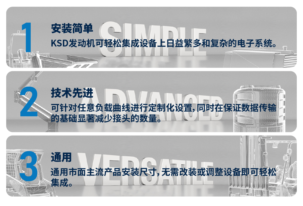 KSD的设计面向所有现有和未来的设备,适用于您所能想到的任何应用,包括电力领域的发电机、农用拖拉机、建筑业中的挖掘机和装载机、物流用叉车,以及压缩机、自卸车、割草机和冰箱等。