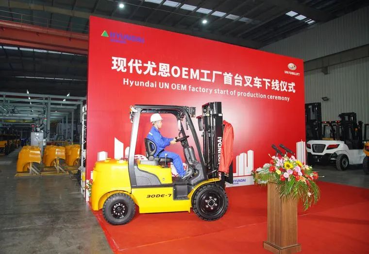 经过多轮次的洽谈沟通,2021年1月,尤恩叉车与韩国现代建设机械集团正式签署战略合作协议并着手筹建现代化生产线,自此尤恩叉车成为韩国现代的重要OEM(原厂设备制造商)合作伙伴,实现双方技术和品牌优势完美融合,在叉车领域开启全面战略合作模式。