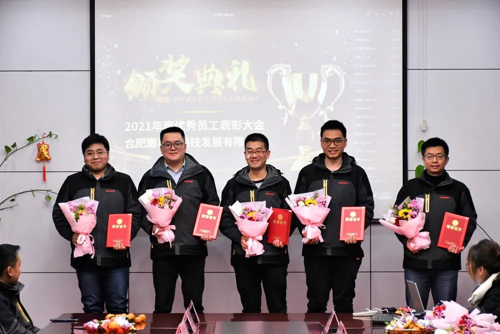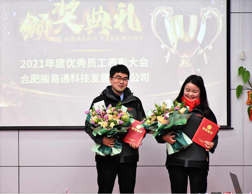 在已经过去的2021年,合肥搬易通在全体员工的努力下销售业绩和生产产值再创新高。2022年1月24日,MIMA举行了2021年度优秀员工表彰大会。MIMA总经理韩总、常务副总许总、各部门负责人及优秀员工参加了本次会议。