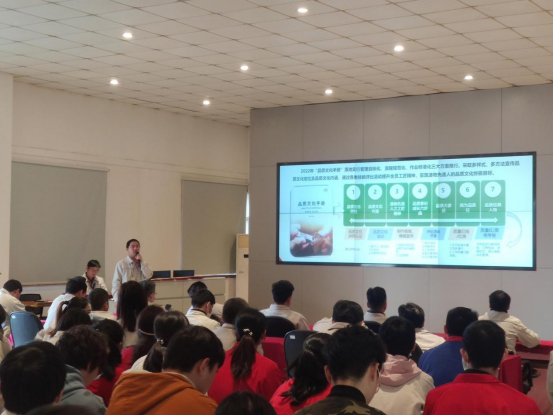 事业部品质文化推行干事欧小飞总结2021年度品质文化工作推行情况,着重讲解2022年品质文化手册实施落地规划,激发、鼓励全员学习品质、参与品质,建立品质文化氛围,宣传以及竞技类活动还需不断进行完善和提升,分别从文化成熟度、QCC、工匠建设等方面进行分解。
