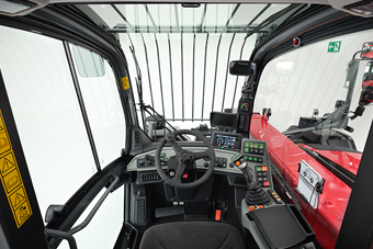 “操作员至上”是所有组件的操作理念,经过平衡,以确保驾驶员的工作人体工程学、安全性和舒适性。在这方面,值得一提的是带有操纵杆和键盘的减震控制台、7 英寸大显示屏、符合人体工程学的组件布局、颜色编码的直观操作系统、宽敞的存储空间、方便的“回家”照明和宽敞的入口带防滑台阶,无障碍物。