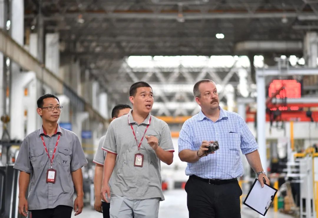 厦门工厂HSE团队与集团HSE经理Paul Green一起巡视工厂安全事项"让安全措施成为员工的一种习惯"